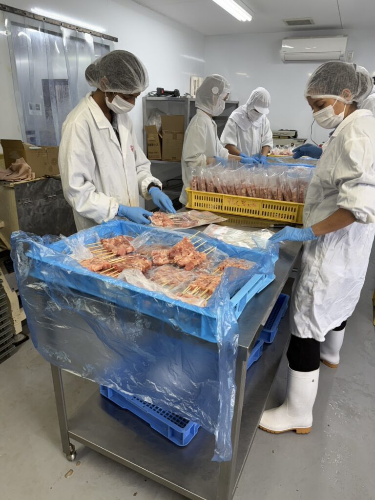 主に鶏肉の串加工を中心に、季節に応じてロールキャベツなどの製造も行っております。